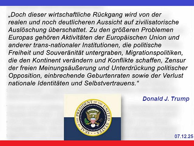 Das interessante ist, dass die linken Akteure nun das Wort – Weltordnung – in dem Mund nehmen, und gemäss ihrer Orwell’schen Umkehrung (welche selbst der neue Papst Leo schon mitbekommen hat) nun damit meinen, dass die neue rechts-konservative Bewegung der Trump-Administration angeblich die – nämlich von der linken, progressiven, neosozialischen Bewegung – bisherige „Weltordnung“ und das Ziel die NWO einzuführen, störe, und angreifen würde. Der offenbar schon senile Linksextremist – der alle Ostdeutschen am 3.10.25 als Rechtsextremisten und Nazis abwertete – scheint nicht mehr mitzubekommen, was auf der Weltbühne abläuft. Die progressive woke Linke und ihre NGO-Mafia zusammen mit dem WEF und einigen linken Psychopathen, Impfclowns und Milliardären, wollten die von Bush Senior angedrohte: Neue Weltordnung – aka NWO – einen Eine-Weltregierung, mittels Krisen und Überwachung herbeiführen. Die US-Regierung hat nun – warum auch immer – diesen linken Coup durchschaut, und steuert nun dagegen, auch weil es ein für Amerika und Europa unchristliches Ziel, also somit ein antichristliches, atheistisches, kommunistisches Unterfangen ist. – Die Menschen darüberhinaus zu versklaven ist ebenfasll unchristlich.