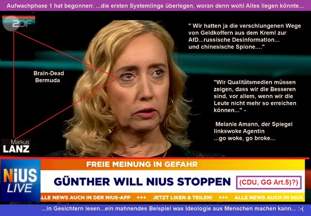 Markus Lanz, der selbsternannter Starjournalist mit merkwürdiger Mimik und Gestik – welche seinen inneren Zwiespalt ausdrückt -, der seine Seele verkaufte, um Millionen Euros mit Wählertäuschung und Staatspropaganda zu verdienen, eine westdeutsche Karriere eben….und andere Konsorten,…mit subtileren Taktiken, Gatekeeper wie Robin Alexander, Ulf Poschardt, Melanie Amann, usw…- …hütet euch vor den falschen Propheten, liebe Leute…!